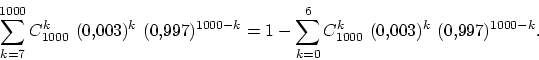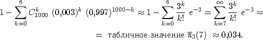 вероятность получить не менее семи успехов в тысяче испытаний схемы Бернулли с вероятностью